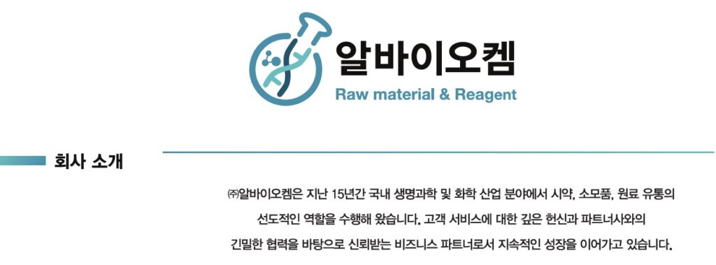 - 회사명: (주)알바이오켐 (R-BioChem Co., Ltd.)